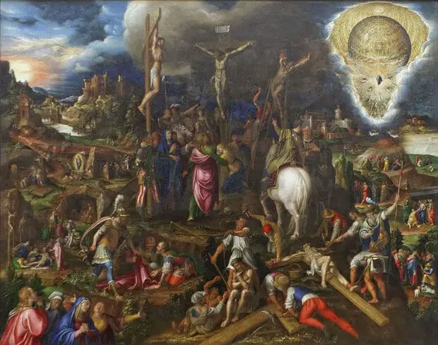이 작품은 매우 인상적이다. 왜냐하면 예수의 죽음부터 승천까지의 모든 사건을 단 하나의 그림 속에 담아냈기 때문이다. 작품을 자세히 들여다보면, 여러 장면들을 찾아내는 재미가 있다. 강렬한 색감과 신비로운 분위기는 보는 이에게 강한 인상을 남긴다.