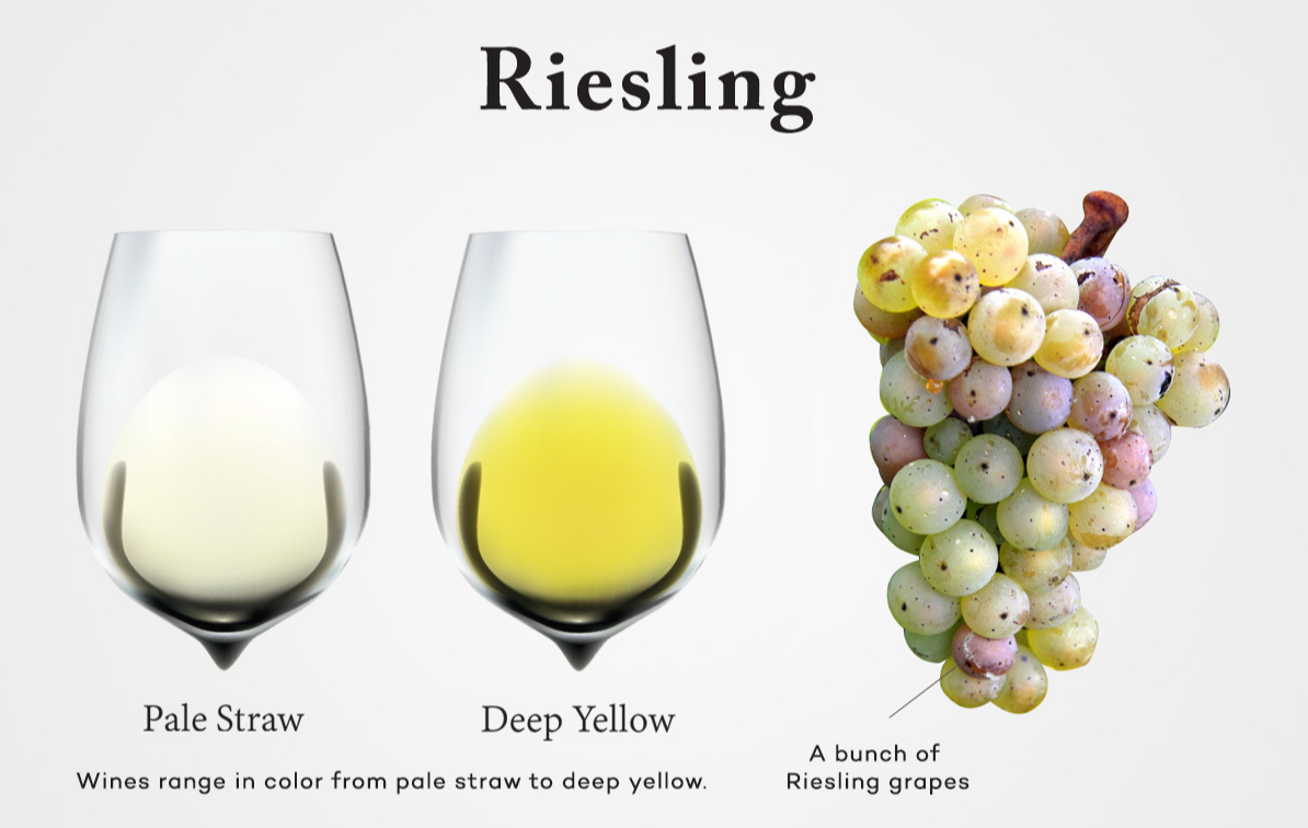 미각적인 특징 : 리즐링 와인은 맑고 투명한 색상을 가지고 있으며, 종종 연한 노란색 또는 초록빛을 띠고 있다. 와인의 알코올 함량은 다양하게 변할 수 있지만, 전반적으로 중간 정도의 알코올 함량을 가지고 있다. 이러한 특징들은 리즐링 와인의 경쾌하고 깨끗한 맛을 형성하는 데에 기여한다.