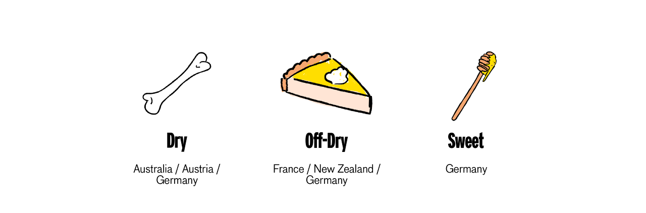 다양한 스타일 : 리즐링 와인은 다양한 스타일로 생산될 수 있다. 많은 리즐링 와인은 레몬과 미네랄 향이 강조되는 '드라이(Dry)' 스타일을 갖고 있다. 지역에 따라서는 달콤하고 과일의 단맛이 풍부한 '스위트(Sweet)' 스타일도 있고, 중간 정도의 단맛과 산도를 가진 '오프-드라이'나 '하프-드라이(Half-Dry)' 스타일의 리즐링 와인도 있다. 이러한 다양한 스타일은 와인 제조 과정에서 포도의 성숙도, 발효 과정의 조절, 당도 조절 등의 요인에 따라 결정된다.